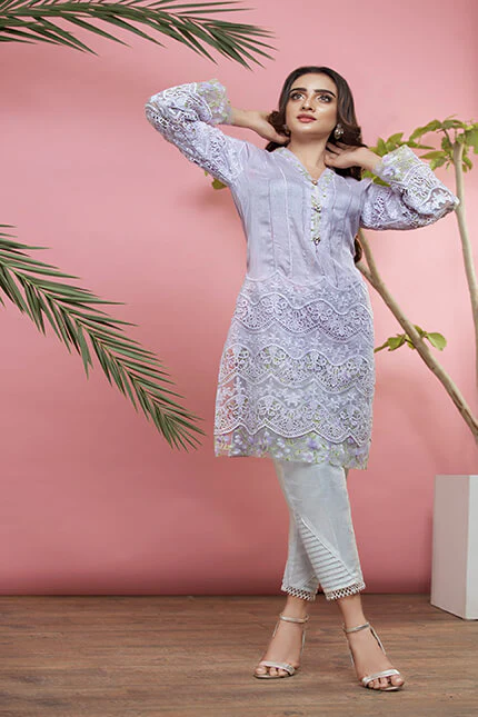 Hand Embellished Printed Organza Chinese Neckline,
